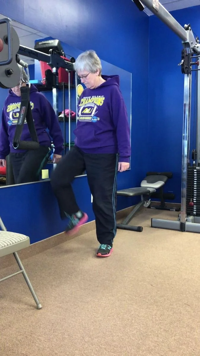 Why is this important? Lower body strength may reduce the risk of falling! Also, it is important for tasks such as stair climbing, walking, and getting out of a chair, tub, or car.
