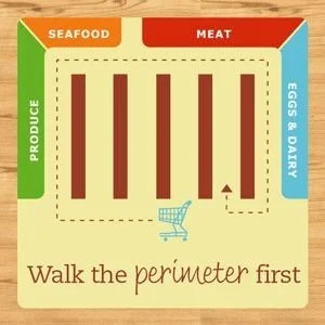 Stick to the perimeter of the grocery store as much as possible. This is where fresh produce, fresh meats, seafood, eggs and dairy are located. These types of foods give us essential nutrients our bodies need. The middle aisles are where you’ll find all the processed foods with added sugar, fat, etc. These are the “empty calorie” the kinds of foods. In other words, they are high in calories, don’t provide us with healthy nutrition, and may cause weight gain.